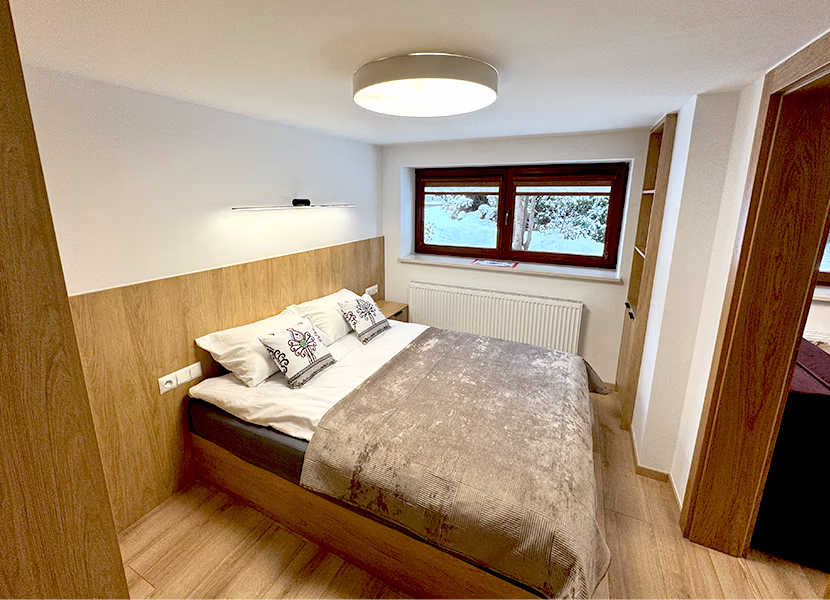 Opis pokoju: Pokój Giewont wyposażony jest w podwójne łóżko oraz wygodną rozkładaną kanapę, która pełni funkcję dodatkowego...